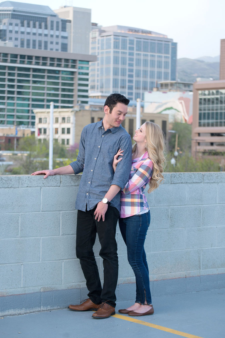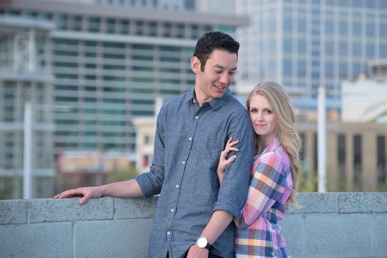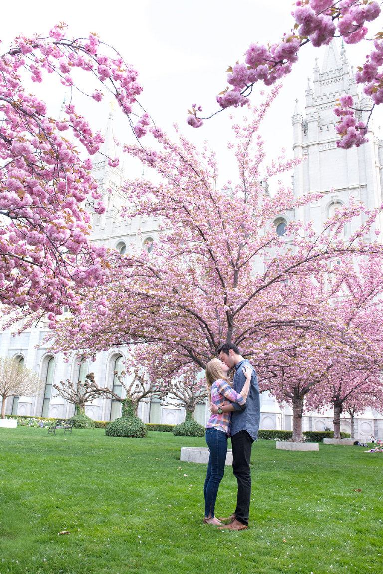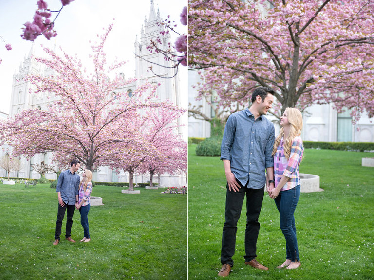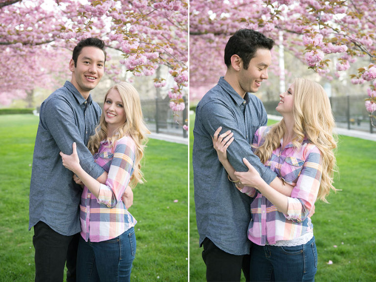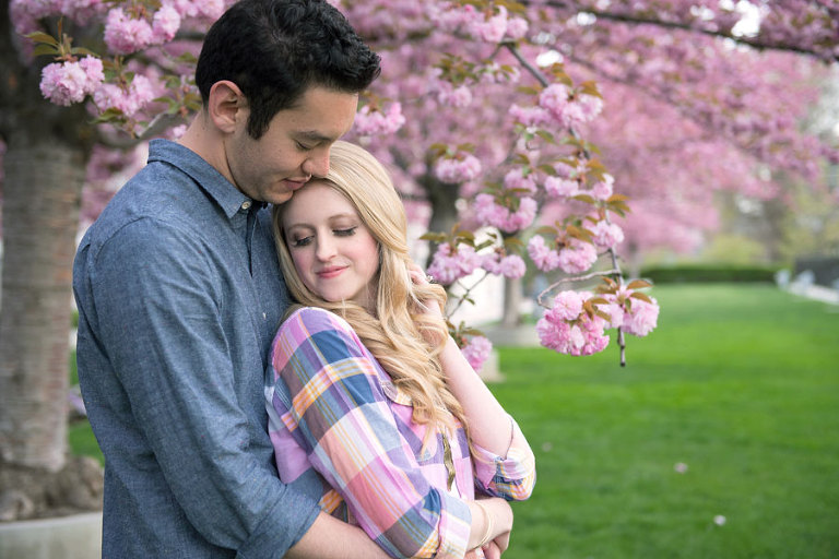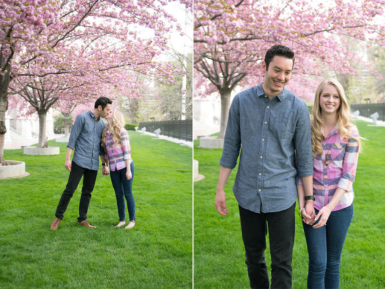 I loved spending the evening with these two while shooting their engagement photos. Jared and Brittany have such a fun relationship and are so sweet to eachother. I was excited when they choose to have their engagement session downtown but we were all even more thrilled when we found out the blossoms were in full bloom the day of the shoot. The timing couldn’t have been more perfect. .jpg)